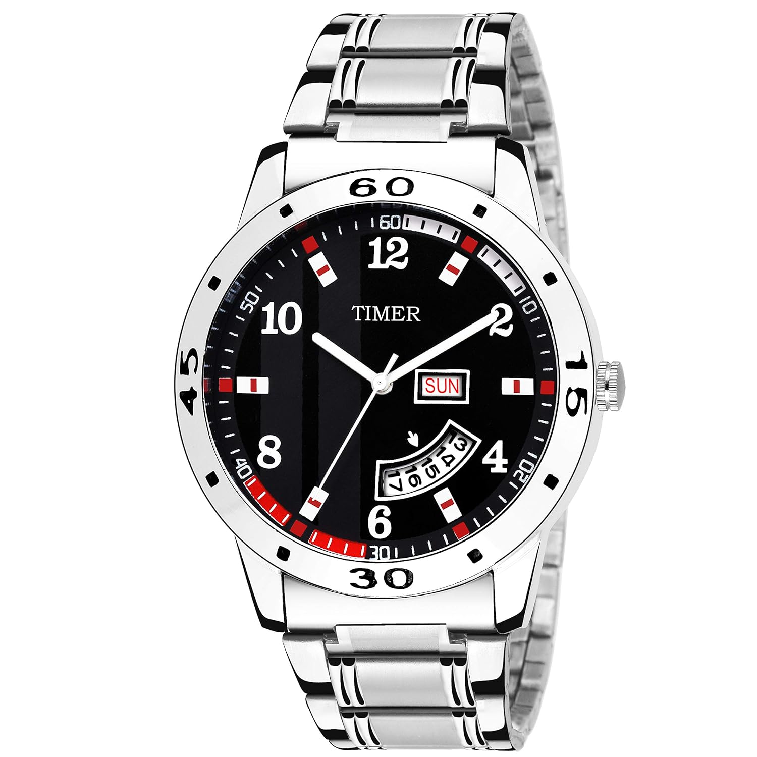 Timer Fashionable Day and Date Wrist Watch Analog Dial Silver Chain Chronograph Wrist Watch for Men & Boys